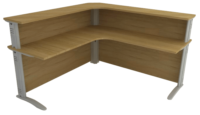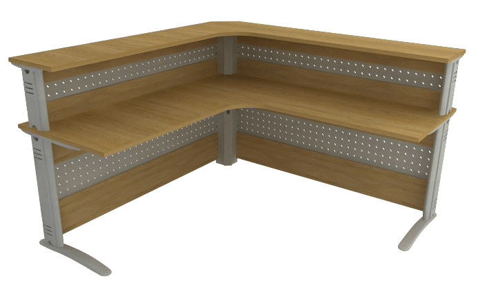 Balcão de Atendimento “L” com Painel Frontal Mesclado Aço e MDP Linha Impéria Premium