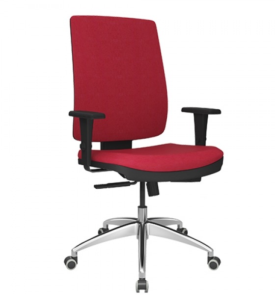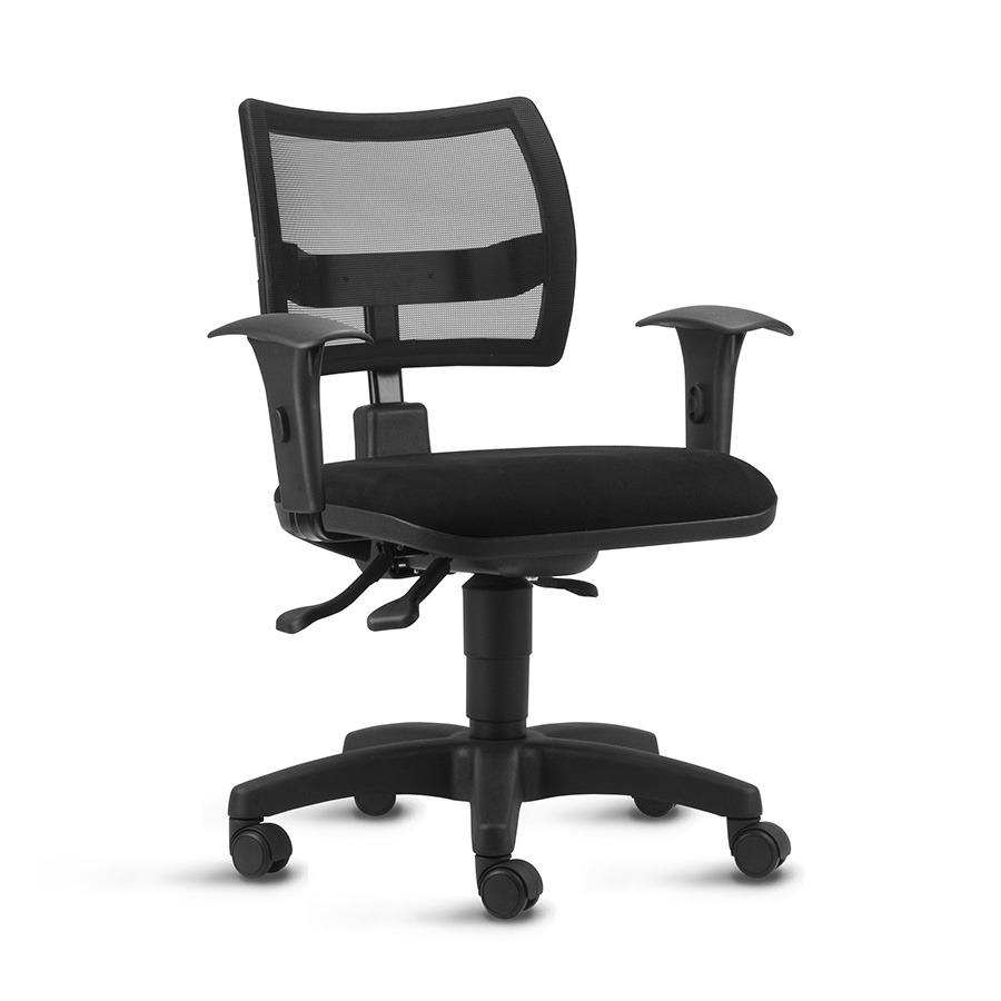 Mecanismos do tipo syncron e contato permanente que possibilita ajuste de altura do assento, ajuste de altura do encosto e ajuste de inclinação do encosto, de maneira independente entre si