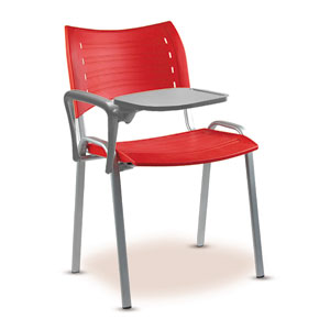 Com assento e encosto injetados em polipropileno, 100% reciclável
