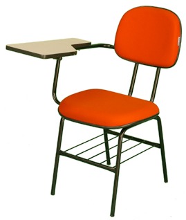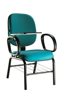 Encosto em polímero injetado, em diversas cores, design único com curvatura lombar que permite maior conforto, braço fixo.